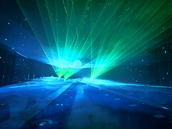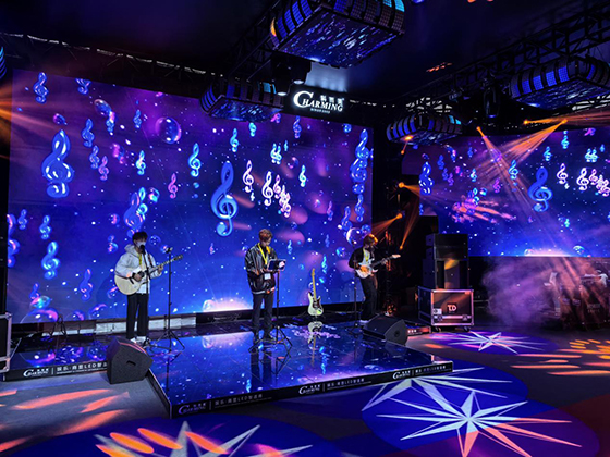 展會各處不乏此類小型舞臺表演現場,在燈光設備的氣氛烘托下,如“地下偶像演唱會現場”般的體驗吸引了無數觀眾圍觀。然而在影像人眼中,優質的視聽體驗可不止于此,一成不變的舞臺背景無法表現不同歌曲的意境,場地四處的射燈僅充當了“氣氛組”,這樣的音樂會現場已為人熟知多年,不如用科技影像打破這墨守成規。時下成熟的沉浸式餐廳投影方案與此正有異曲同工之處,全新的“有內容”的場景讓本就將就臨場體驗的舞臺演藝場景沉浸感更甚,何樂而不為?