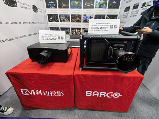 面向大型舞臺演藝現場,科邁攜自主品牌及巴可高端UDM系列工程投影機在展會現場做靜態展示。文旅數字化進程中,由投影扛起大旗的室內外優秀文旅項目有目共睹,投影產品一次次的亮度突破足以在各類大型舞臺演藝場景中與燈光爭輝、大放異彩。
