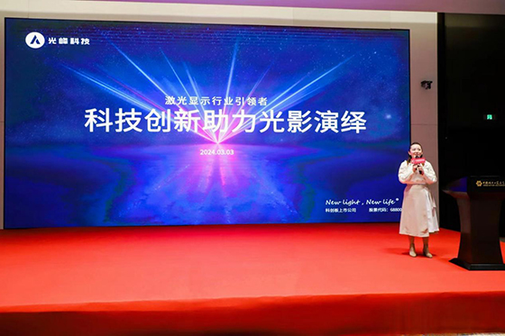 光峰科技專顯事業部工程業務中心總監張曉敏帶來《科技創新助力光影演繹》主題報告,詳細介紹了激光顯示技術(ALPD)的原理、發展歷程、技術及應用領域,展示最新的產品及應用案例。光峰科技依靠自身創新研發能力,推出多款行業領先產品。