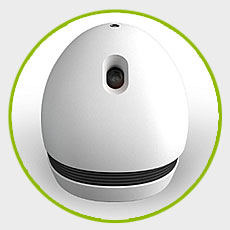 的正面是一只燈光投影口,頂部是攝像頭,底部的兩道履帶讓它可以自行移動。Keecker 運行