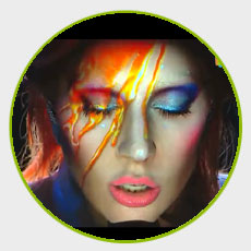 Gaga臉上起初仿佛巖漿流淌而過,后來隨著妝容的不斷變幻出現(xiàn)了閃電,接著,一只逼真的蜘蛛突然從左眼“爬到”右眼,緩慢劃過臉頰,最終在額頭處幻化成魔洞。在全息投影映襯下,Lady