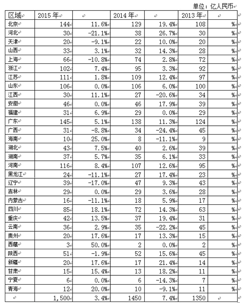 2013年、2014年、2015年中國專業音視頻市場各地區總量及增速(產品+服務)