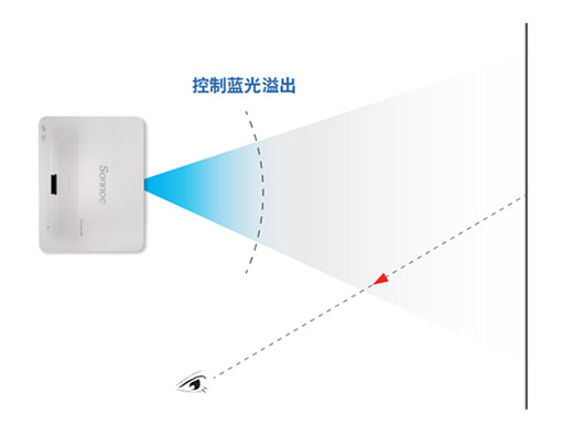 同時(shí)具有專業(yè)“顯示設(shè)備顯示性能和視覺(jué)健康”認(rèn)證的投影機(jī),可以有效控制溢出藍(lán)光危害部分(波段:420nm~460nm)。