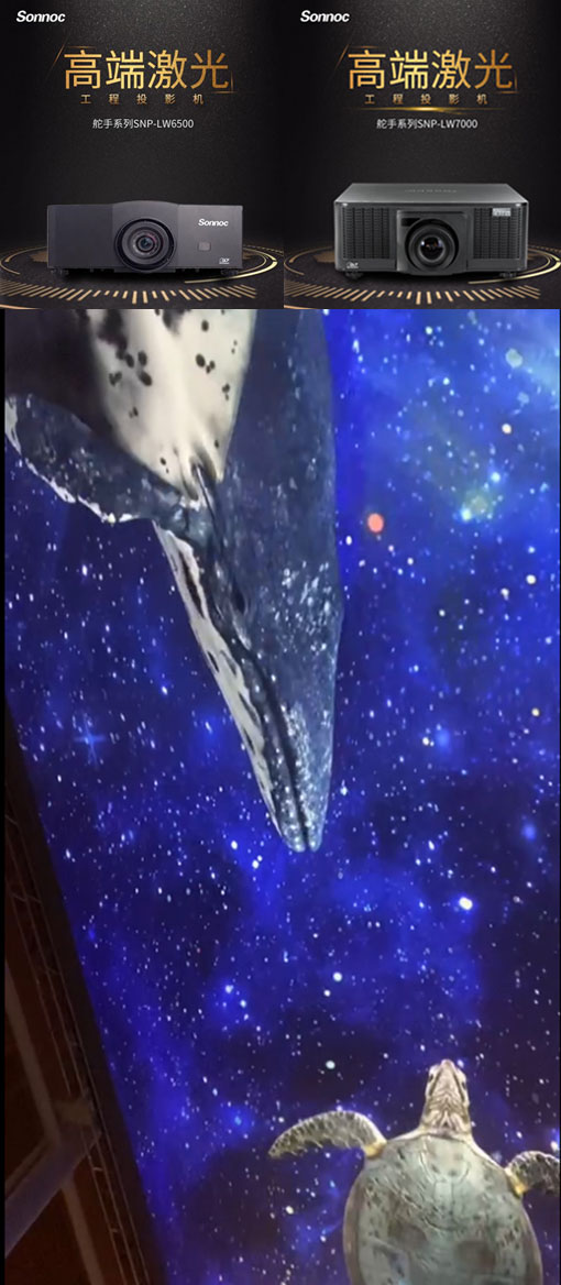 索諾克利用全息投影技術為五愛市場天幕系統(tǒng)提供解決方案,用數(shù)臺舵手系列SNP-LW6500和SNP-LW7000投影機打造天幕全息投影,一躍成為五愛夜市中一大亮麗風景線。