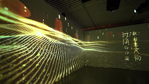 剛走進(jìn)美索不達(dá)米亞展區(qū),就可以欣賞到一副光影畫卷。由索諾克SNP-LU9000激光高亮工程投影機(jī)呈現(xiàn)的《敘利亞文物—時間的沙漏》圖像。鮮亮的色彩在踏進(jìn)展區(qū)的一刻,便讓人眼前一亮。9000流明亮度將金色沙粒的光感很好的呈現(xiàn)出來,4K級別畫質(zhì)讓沙粒的細(xì)節(jié)清晰可見。
