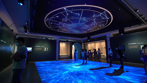 走過亞述時期,明亮的“巴比倫藍(lán)”將我們的視線拉回。顏色,作為此次展覽的亮點(diǎn)之一,細(xì)細(xì)觀察可以看到展覽從石器時代到青銅時代、鐵器時代都有不同。高飽和度的巴比倫藍(lán)具有強(qiáng)烈的色彩沖擊力,呈現(xiàn)這種色彩變換的是索諾克SNP-LU9000激光高亮工程投影機(jī)。古老的蘇美爾人和巴比倫人將晚上星空視作神的預(yù)言,巴比倫學(xué)者將12星座與一年的12月相對應(yīng)。在星空的蒼穹頂下,索諾克投影呈現(xiàn)的巴比倫藍(lán)唯美而夢幻。