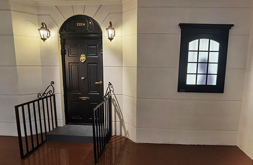 穿過貝克街道,來到熟悉又陌生的221B門前,抬手輕叩窗沿并無回應,或許福爾摩斯先生此時正對著案件線索想的出神,無暇顧及窗外來客吧。向左深入展廳,沉浸偵探之旅也將就此開始……