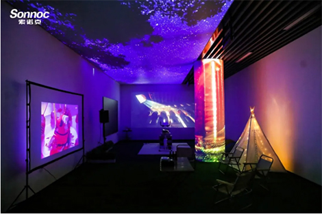 星網視易的融合器產品,可以與索諾克投影機完美配合,實現如光影餐廳等沉浸式場景的應用。 |