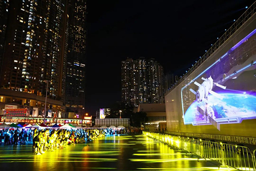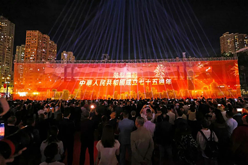 中國香港荃灣國慶盛典的70米超寬紗幕投影,見證著索諾克在極限環(huán)境中的技術(shù)掌控力。面對戶外強(qiáng)光干擾與復(fù)雜舞臺調(diào)度,17臺20,000流明航海家系列激光工程投影機(jī)與2臺15000流明投影機(jī)構(gòu)建起光影矩陣,搭配激光光源的精準(zhǔn)色彩還原,完美呈現(xiàn)動態(tài)光影藝術(shù),將香港荃灣特色文化轉(zhuǎn)化為數(shù)字畫布,以"光影外交"的特殊語言完成香港與祖國的深情對話。
