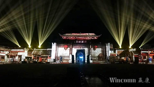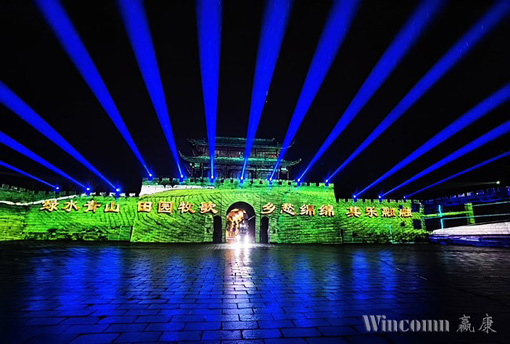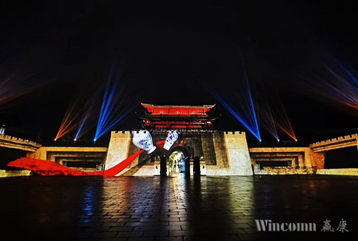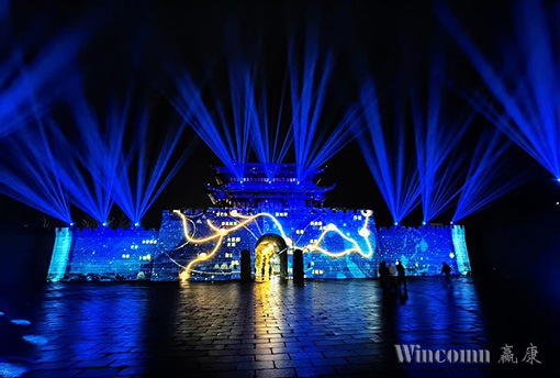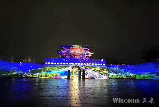建于唐朝元和十一年,距今有一千一百八十多年的歷史。贏康科技憑借豐富的古建筑項目經驗,為該項目采用了十余臺激光投影機,根據建筑的特點采用了20000流明、17000流明和13000流明等不同亮度投影機,進行靈活的混合設計。該投影方案從設備的高亮度需求,優質的畫面呈現,到系統的平穩可靠、靜音運行,都保證了上千余名游客的良好觀看體驗,呈現了一場細膩精美,綺麗驚艷的古城光影秀演出。