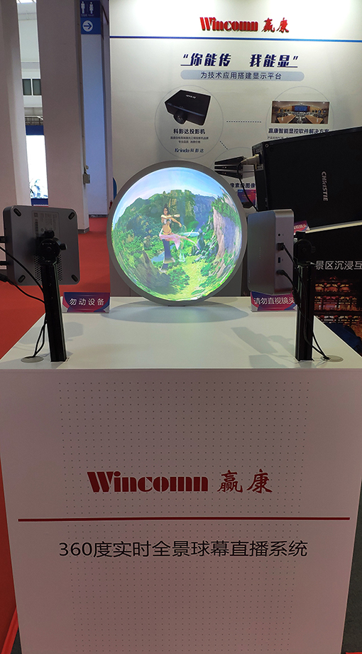 展會現場,贏康還帶來了實時全景攝像采集系統+球幕直播顯示系統,適用于各種實時創意展示場景。