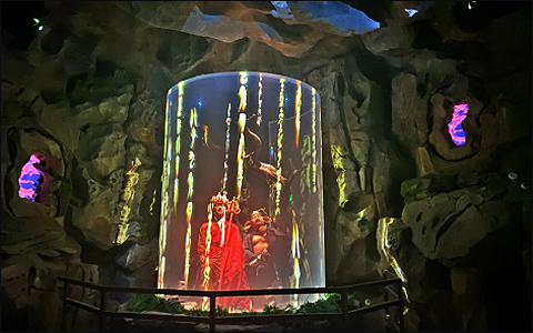 贏康為該項目中的造型投影、幻影成像、直幕投影、弧幕投影、紗幕投影等多種投影方案完成了光路設計、設備供應和調試等工作。