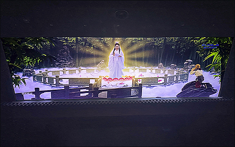 真實布景與全息影像、立體影像、機械特技、6自由度高精度軌道動感車結合,游客乘坐8人座動感車,在虛實結合的場景中穿梭,沉浸式體驗取經(jīng)途中對戰(zhàn)蜘蛛精、蜈蚣精的驚險難關。