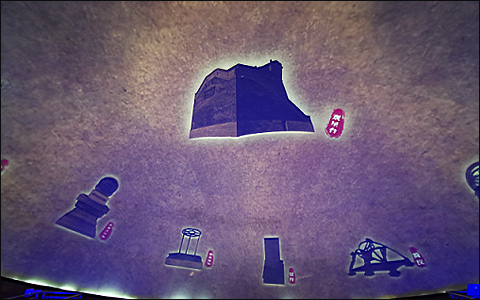 重點場景是多個球幕結合超感飛翔車的創(chuàng)新應用,此外,還有弧幕、全息幕、天幕、異形幕以及茅屋建筑投影,贏康進行細致設計。