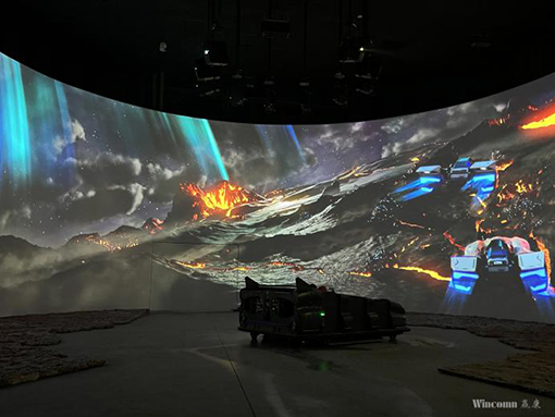 為完善項目布局,進一步深化景區主題文化游樂IP,為游客帶來文化科技旅游新體驗,白鹿原影視城打造了國內首個大型沉浸式無軌、無人駕駛飛船黑暗乘騎項目——“公元一萬年”。贏康科技負責該項目的視音頻系統,打造沉浸式史詩級電影視效,并負責了項目的總控系統,實現移步換景“幀同步”級的全沉浸體驗。