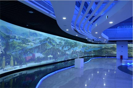 安恒集團在充分了解客戶需求的情況下,采用33臺松下8000流明DLP單芯片投影機,其獨有的色彩、亮度控制功能使100米長的畫面保持了亮度、色彩的高度一致性。在此基礎上,安恒專業的技術團隊重新設計了安裝方式,并在每臺投影機上加裝了散熱風扇,配合使用百葉窗散熱,兼具美觀與實用的雙重功能,完全契合客戶需求,贏得了一致的贊賞。