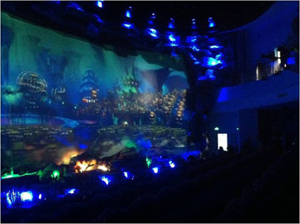 該項目共使用15臺20000流明松下三芯片DLP工程投影機,包括內球幕投影和4D影院兩大展項,采用正投融合、豎投一次反射、3D被動立體等多種投影方式,結合松下獨具的多臺投影機亮度控制技術、內置多畫面拼接系統(tǒng)等先進科技,成功為游客打造了穿越古今、縱覽環(huán)宇的震撼視覺效果。