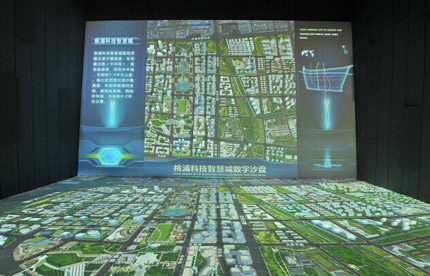 安恒集團及合作伙伴打造的上!疤移挚萍贾腔鄢且巹澱故攫^”,分為高清數字沙盤、高強度產業調整成果、安防智慧谷等多個展示區。多媒體演示形式,生動翔實地介紹桃浦科技智慧城形成演變的歷程,全面展示了桃浦未來規劃建設發展的藍圖。