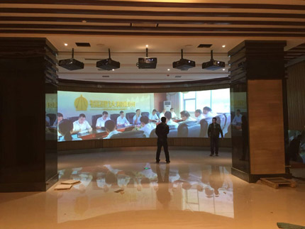 主展廳采用了5臺(tái)PT-FD605C投影機(jī),利用正投的方式成像,它實(shí)現(xiàn)了6800流明的高亮度高畫(huà)質(zhì)的優(yōu)質(zhì)特性,即使投影機(jī)置于燈光明亮的大堂也能呈現(xiàn)出更清晰、對(duì)比度更高的圖像效果。卓越的智能色彩亮度控制技術(shù),通過(guò)實(shí)時(shí)調(diào)節(jié)燈源功率,便可實(shí)現(xiàn)高亮度同時(shí)也提高了色彩表現(xiàn)力。