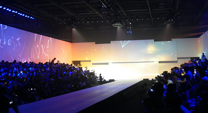 震撼炫彩的成像效果是發(fā)布會(huì)成功的關(guān)鍵因素,本次發(fā)布會(huì)現(xiàn)場(chǎng)采用了安恒集團(tuán)代理的20臺(tái)松下PT-SLX16K投影機(jī),發(fā)布會(huì)以炫酷的燈光秀作為開場(chǎng),270度環(huán)幕上的動(dòng)感畫面與T臺(tái)上的流動(dòng)字幕交相輝映,打造了一個(gè)夢(mèng)幻空間,讓現(xiàn)場(chǎng)觀眾感覺仿佛置身于浩瀚的星空之下。