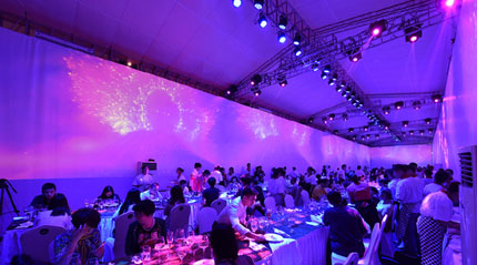 PT-FRZ68C投影機24小時/7天連續運行和20000小時免維護的優異性能,保證了這場精彩的視覺盛宴順利進行。眼前是色彩斑斕的畫面,耳畔是優美的旋律,鼻間還縈繞著美食的芳香,將這場晚宴好像有一種在拍電影的即視感,引領味蕾進入更高的層次。晚宴在變幻的光影中,完美落下帷幕。
