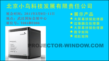 2011年3月9-11日,北京小鳥科技發展有限責任公司將攜大屏幕拼接處理器,邊緣融合器,多畫面分割器,矩陣切換器等亮相于2011中國(武漢)社會公共安全產品與技術設備展覽會。
