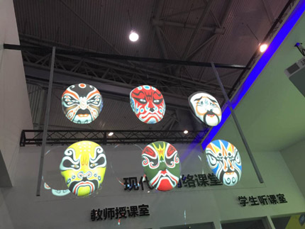 采用2臺日立投影機HCP-FU50H雙機疊加投影,純白色的臉譜在投影畫面的變換下,依次更換臉譜畫面,猶如真人再現國粹藝術,適用于模擬教學。