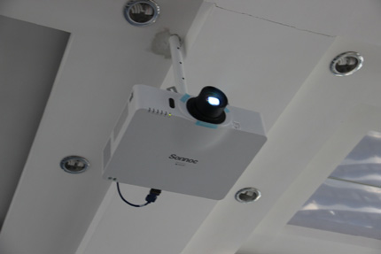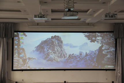 而考慮到系統的穩定性及教學演示效果,該項目選擇使用2臺型號為SNP-DSW700的索諾克Sonnoc高端工程投影機,通過拼接融合的方式實現投射6.51米*2.33米超大畫面(融合器選用Donview