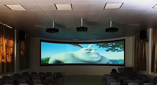 實訓室顯示運用到索諾克Sonnoc SNP-FW65C高清投影機及東方中原高清融合系統組成,將顯示畫面投射在一塊9 x