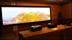 本套系統使用了10臺PD F32SX+內置式INFITEC光譜立體投影機,投射在一個弧度180度正投屏幕上面,清晰再現海面各種復雜天氣情況。 |