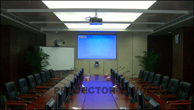 由于本會議室觀看者范圍形狀狹長,對于光學正投屏幕的使用是非常理想的,其2.3的屏幕增益優勢也得到了很好的展現。
