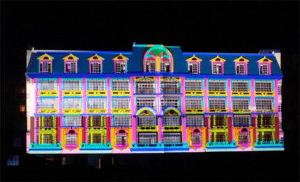 近期,百萬葵園巨資興建了充滿童話色彩的五星級酒店,并在酒店外墻上打造了充滿夢幻與科技感的裸眼3D光影秀。贏康科技為其安裝了4