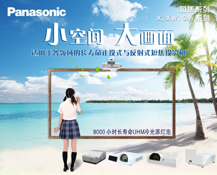 松下短焦系列產品還集成諸多人性化設計元素,如28dB靜音設計、USB記憶瀏覽功能、USB顯示功能、水平垂直和四角梯形校正、曲面校正功能、全新直排式冷卻散熱系統、密閉機殼配合側面大型風琴褶皺型空氣過濾網結構、支持一臺電腦最多對2048臺投影機進行有線網絡監控管理等。