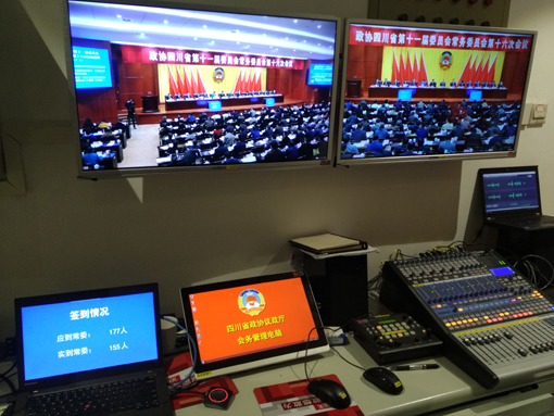 本議政廳的多媒體會議系統圍繞“兩個中心、四套平臺、六種場景和十大功能”展開,此設計得到了四川省政協領導的高度認可。在軟件方面我們采用了會務管理系統軟件、可視化呈現軟件、講稿導讀系統軟件、自動跟蹤軟件以及集中控制軟件,為政協領導提供了靈活、高效、便捷的會議支持。