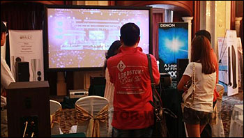 為了能把握住此次難得的機會,杭州及浙江當地的眾多經銷商參加此次活動的熱情也非常之高漲,活動尚未開始臺下早已座無虛席。而作為主辦方的“網庭影音機構”本著“影•響•力”的口號及宗旨(“影”是影像、“響”是音響、“力”是給力)全面推動杭州及周邊地區的未來市場發展狀況,同時對該地區發展還有著更深遠的影響,并且有助未來市場的開拓與可持續發展。