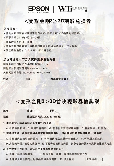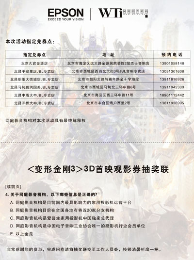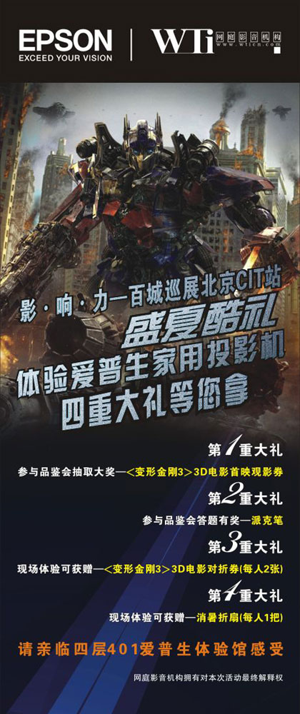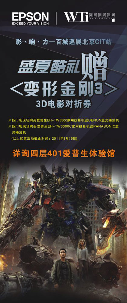 體驗(yàn)愛(ài)普生家用投影機(jī),贈(zèng)<變形金剛3>3D電影對(duì)折券