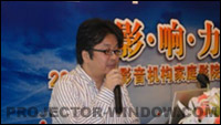OS作為目前投影幕布行業中頂級的產品,此次網庭同樣也邀請到了兩位重量級的人物OS喜摩公司副總經理河南義夫與營業部部長孟照輝,孟部長也分析了玻珠幕布未來的技術成長空間,展望了未來高端投影幕的發展。