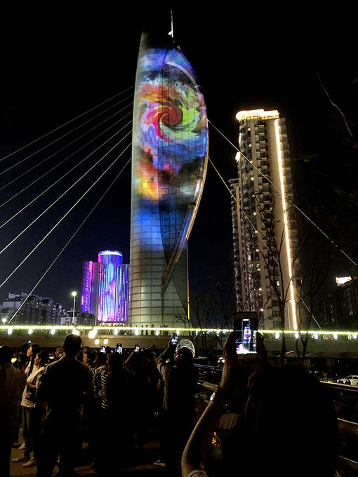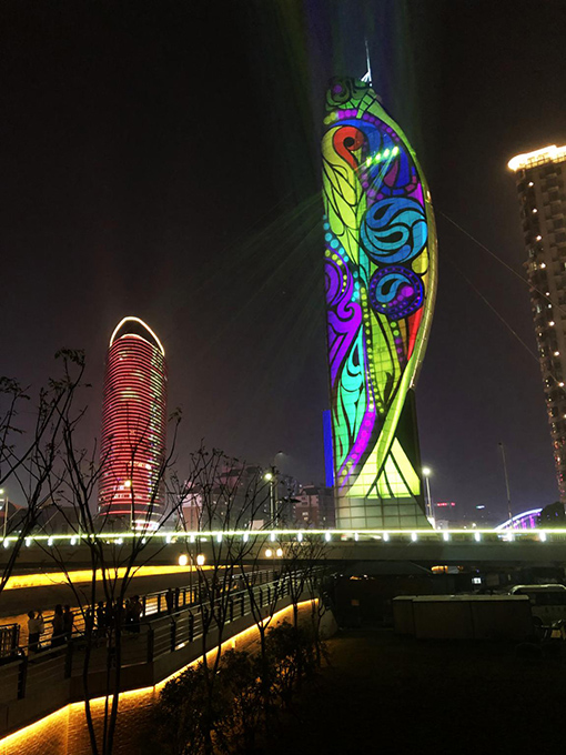 2019長三角地區(qū)峰會選址蕪湖之后,為更好的迎接峰會,蕪湖啟動了“十里江灣夜景亮化工程啟動”項目,臨江橋塔投影秀便是其中之一,贏康參與了該項目的投影工作,為其進行了投影片源設(shè)計、制作,投影系統(tǒng)設(shè)計等服務(wù)。