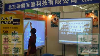 北京瑞麟百嘉科技有限公司參加了本次展會,展示了天士博TRACEBoard數(shù)碼互動白板產(chǎn)品,其具有功能齊全,操作便捷等特點。可用講臺直接控制計算機,支持電子墨水在講臺上直接書寫,并可將講臺上的書寫內(nèi)容保存、記錄、打印或發(fā)送到E-mail中,是面向新型教學(xué)的出色產(chǎn)品。