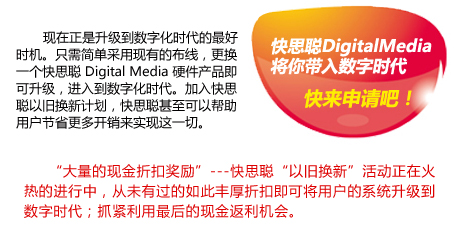 DigitalMedia(簡稱DM)使用原本的線纜為模擬升級到數字化提供無縫過渡。DM能接收、 管理、