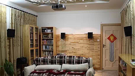 一個具有原木風格的私家影院給人留下難忘的印象,影音室位于二樓正中間,約26平米,與樓道間相連,經此通往各個房間。因此,客廳功能的定位對用于視聽室,在音箱、器材擺位方面受到一定限制。不過,總體布局和擺位看上去非常整潔,盡可能地貼近了標準環繞聲的擺放要求。