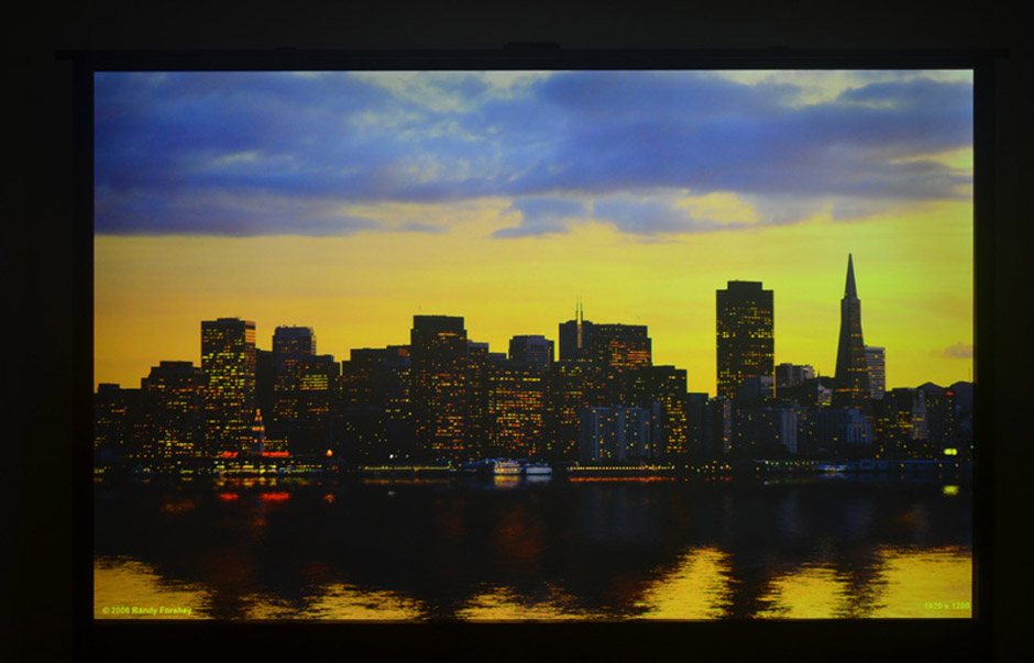 經典的城市圖片,考驗投影機的色彩準確性和通透度,窗口燈光的細節也很重要,PT-FZ570C體現出了水面倒影的光澤和云彩的透光等豐富的細節。 |