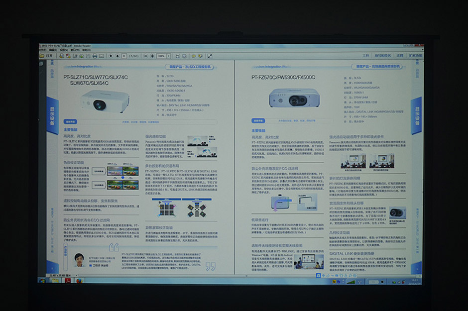 松下PT-FZ570C主要面向中高端會議室,所以我們特別投影文檔文件,感受它的效果。 |
