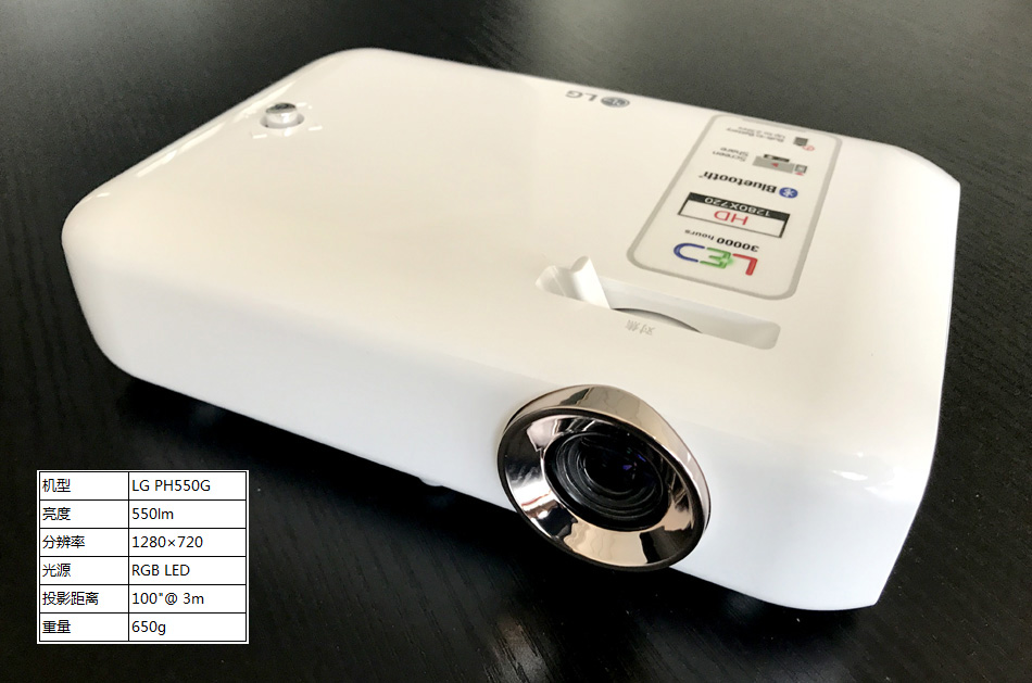 作為LG市場主力機型,PH550G的配置中規中矩,注重實用。雖然沒有采用智能系統,但是支持與智能手機、平板電腦和PC的無線鏡像,還支持藍牙音響。再加上內置電池,應用很方便,是一款功能純粹、效果不錯的微型投影機。