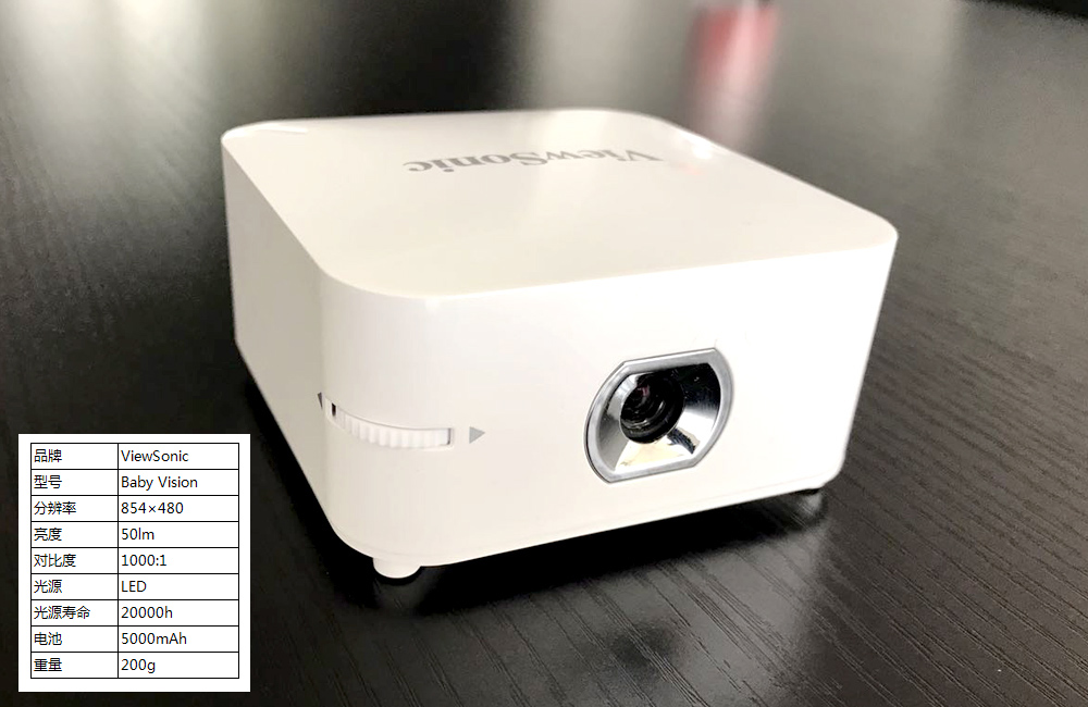 ViewSonic 優(yōu)派 Baby Vision 外形細(xì)膩精巧,“顏值”頗高,輕巧機(jī)身內(nèi)除了Pico投影組件外,還有電池及音響,可謂“內(nèi)涵豐富”。