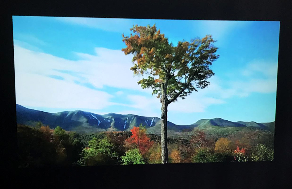 在全黑環(huán)境中播放測(cè)試圖片,Baby Vision 畫面清晰,色調(diào)較深,亮色效果不錯(cuò)。