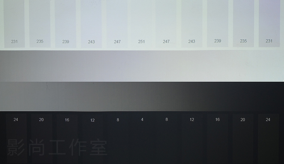 灰階測試圖中過渡流暢,每個差別細小的色塊都能體現