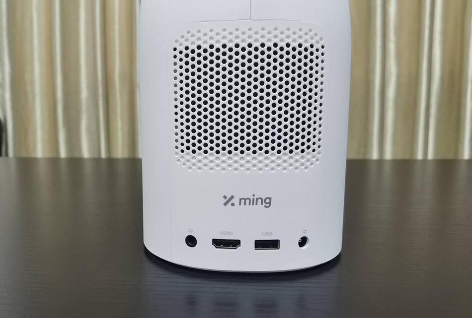 接口方面,小明Q2配置了一個HDMI2.0接口、一個USB-A接口與一個3.5mm耳機接口,對于一款便攜式投影機而言,相對簡單的接口配置反而減輕了用戶選擇繁多的外設的煩惱。