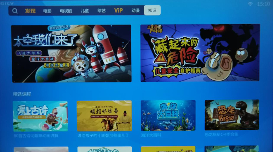 值得一提的是,在小明Q2的內容主頁有一組“知識”內容分類,此分類下有各類寓教于樂的主題內容,這充分滿足了家庭教育場景的需要,無需家長特意檢索,從內容頁面直達的形式讓“學習”成為一種習慣。