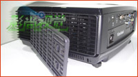 清理防塵過濾網是一件非常麻煩的事情,在公司會議室,學校教室這些場合下,投影機一般都是以吊頂安裝的方式安裝在房間內,這樣可以讓投影機更加安全,而且投影光線受環境影響小,不會像桌面使用時,人會遮擋投影畫面,所以吊頂安裝是大型房間常見的安裝方式。不過這樣安裝投影機雖然解決了一些煩惱,但是在清理投影機時又給維護人員帶來不必要的麻煩,維護人員一般都會將投影機從吊裝架上卸下,然后再進行清理,清理后還要將投影機再安裝到投影吊架上,然后還要對投影畫面進行對焦校正等操作,過程相當的繁瑣。優派PJD7382投影機能夠更便捷的拆下防塵過濾網,在投影機的側面無需任何輔助器具,即可將防塵過濾網卸下,投影機在吊裝的時候就可以進行清理,以及對投影機的日常維護。